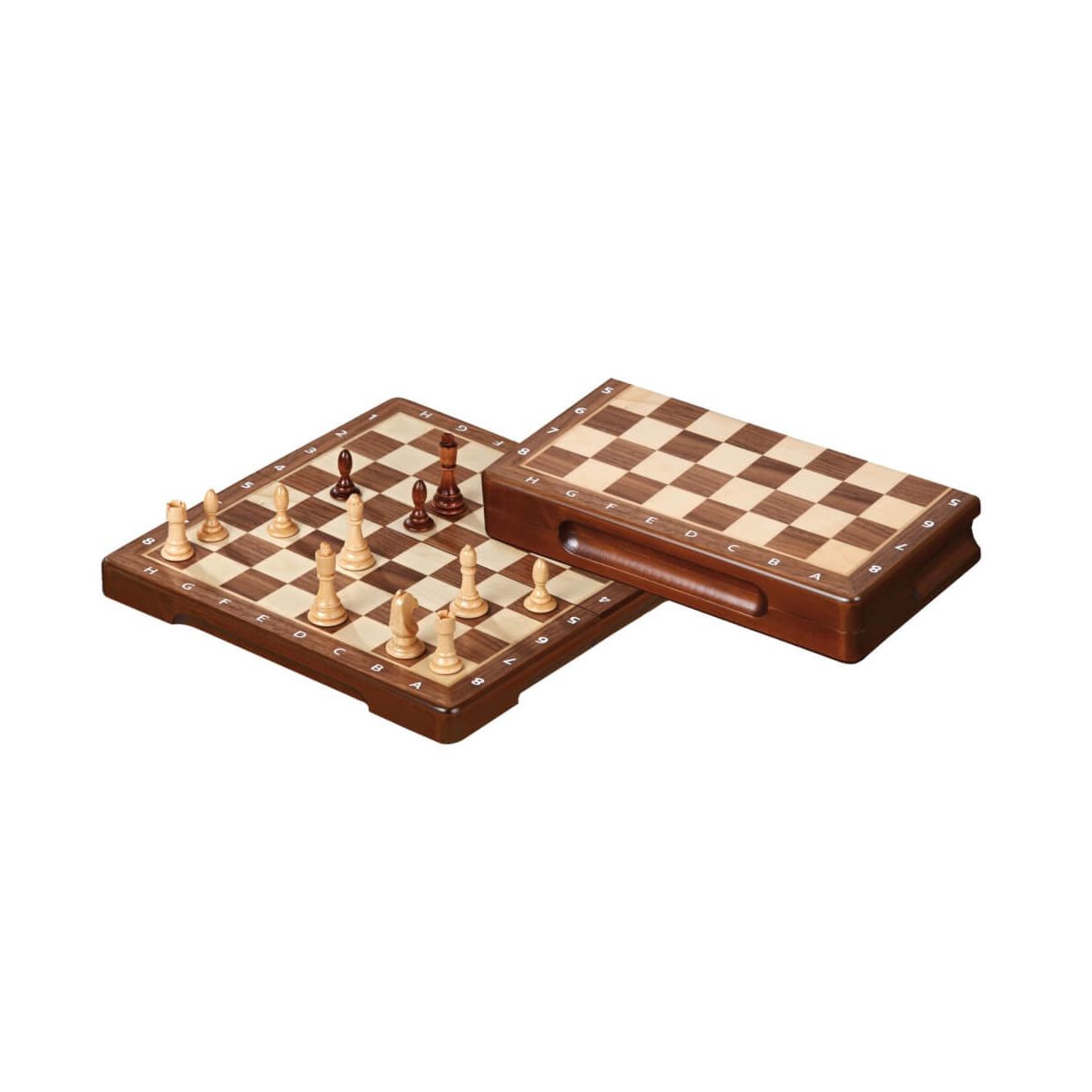Figuren: Design Staunton, Schima-Holz, natur und braun gebeizt, Filzsockel, König 42 mm. Schach gilt als eines der ältesten Strategiespiele der Welt. Man geht davon aus, dass es vor circa 4.000 Jahren in Indien und Persien entstanden ist und sich von dort aus in die ganze Welt verbreitete. Das Moderne Schach, wie wir es heute kennen, ist circa 2.000 Jahre alt und zählt zu den populärsten Spielen rund um den Globus. Schach ist ein spannendes Strategiespiel für zwei Personen. Es hat einfache Regeln und ist trotzdem vielseitig und anspruchsvoll. Kassette: Linde, walnuss gebeizt, Ahorn- und Walnuss-Intarsien, Magnetverschluss, Zierader, matt versiegelt, Randbeschriftung, Maße 235 x 120 x 40 mm, Feldgröße 25 mm..