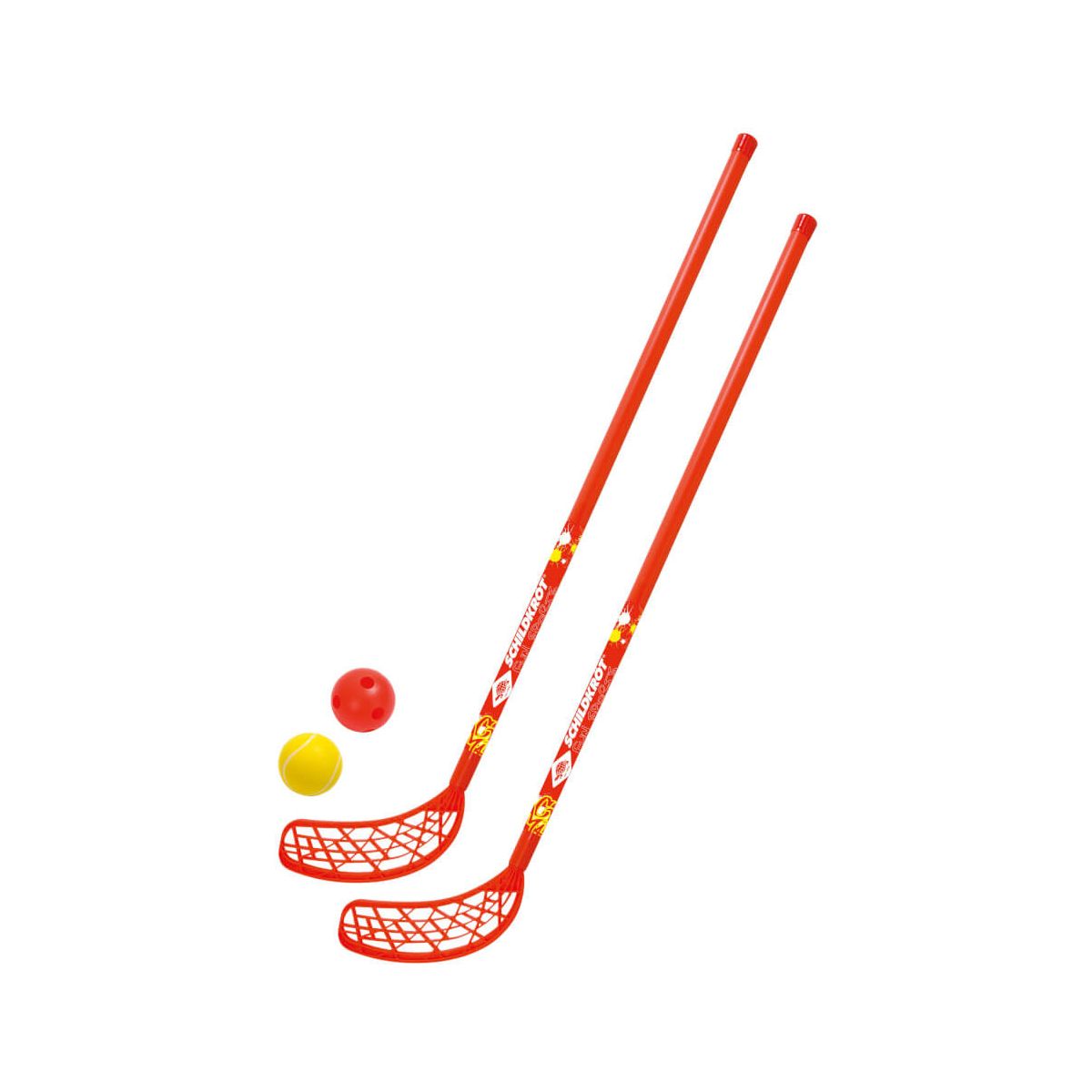 Das vielseitige Fun-Hockey Set (Floorball) ist der ideale Begleiter für Terrasse, Spielstraße und Turnhalle oder im Winter fürs Eis. Das Set besteht aus zwei robusten recht langen Hockey-Schlägern (Länge je 110 cm), einem hohlen Kunststoffball (wie Floorball, Durchmesser 70 mm) und einem Softball aus Schaumstoff (Durchmesser 70 mm). Die Schläger verfügen über gerade Schaufeln (Schaufellänge 26cm), damit sie individuell für Links- und Rechtshänder einsetzbar sind. Tolles Preis-Leistungs-Verhältnis. Die über 100 Jahre alte deutsche Marke Schildkröt gilt als Erfinder des Tischtennisballs. Heute bietet Schildkröt neben Tischtennis auch eine sehr umfangreiche Funsport-Kollektion an und gilt als Marktführer in diesem Bereich..