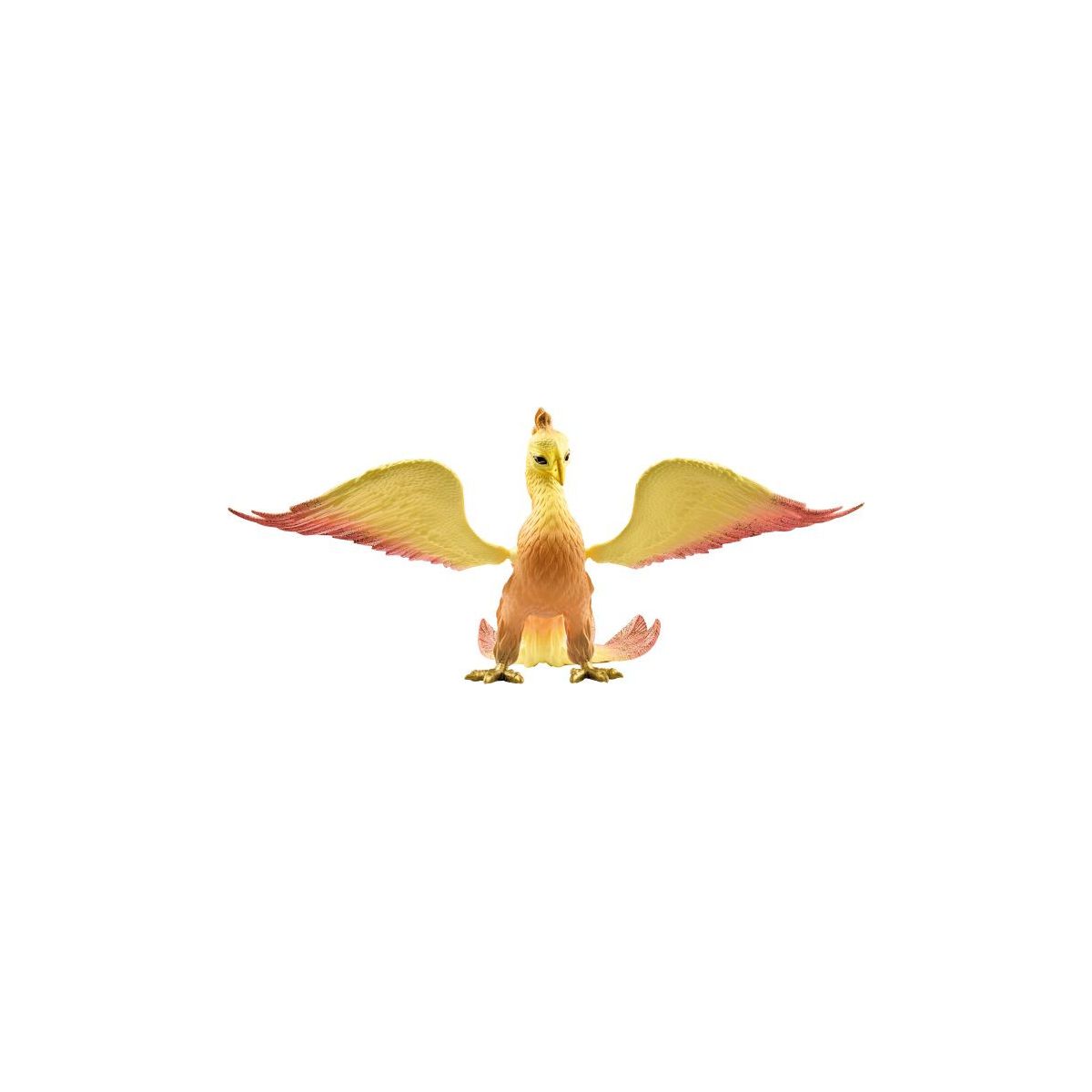 Majestätisch breitet der prächtige Phoenix seine Flügel aus. Erhebt er sich gleich in die Lüfte? Von dort oben hat er BAYALA® fest im Blick. Nichts entgeht seinen großen, dunklen Augen. Wenn er seine Kreise zieht, ist seine eindrucksvolle Silhouette am Himmel schon von Weitem zu sehen. Sein Gefieder strahlt hellgelb mit der Sonne um die Wette und die Spitzen seiner Federn sind rötlich abgesetzt. Wenn er landet, fächert er seine prachtvollen Schwanzfedern auf und schaut mit seinen freundlichen Augen umher. Wo sind denn seine Spielkameraden?