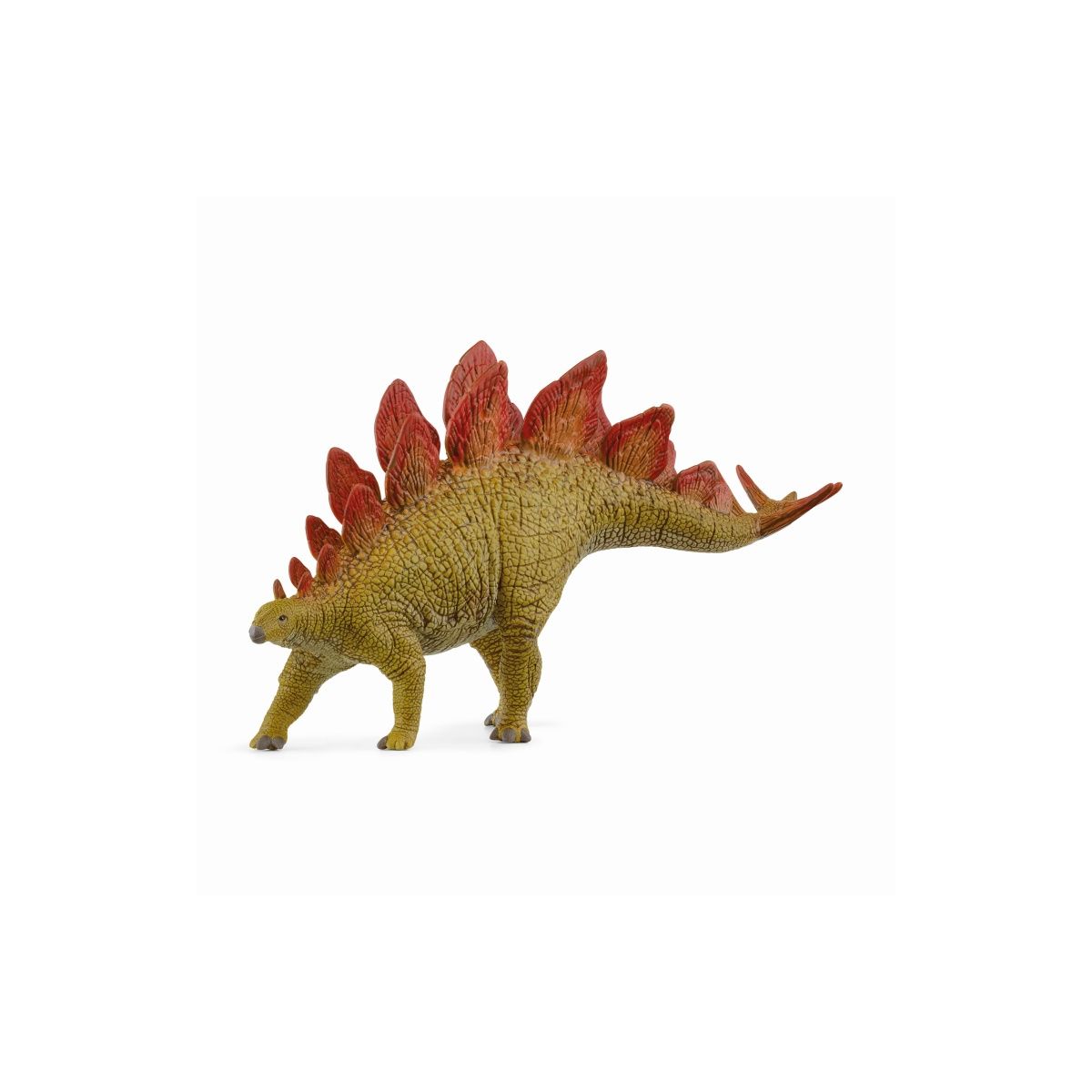 Der Stegosaurus ist schon von Weitem leicht erkennbar - und das nicht nur, weil er ziemlich groß ist: Seine feuerrote Doppelreihe an geschwungenen Knochenplatten auf dem Rücken ist unverkennbar. Sie bildet einen schönen Kontrast zur gelblichen Echsenhaut. Mit gesenktem Kopf stapft er über die Wiesen und hält dabei seinen langen Schwanz immer ein wenig in die Höhe. Wahrscheinlich ist er mal wieder mit Grasen beschäftigt. Das tut der Stegosaurus den lieben langen Tag, denn bis der 4,5 Tonnen schwere Pflanzenfresser satt ist, dauert es eine Weile. Bis zu neun Meter lang wurde dieser Urzeitgigant. Seine Heimat lag im heutigen Nordamerika..