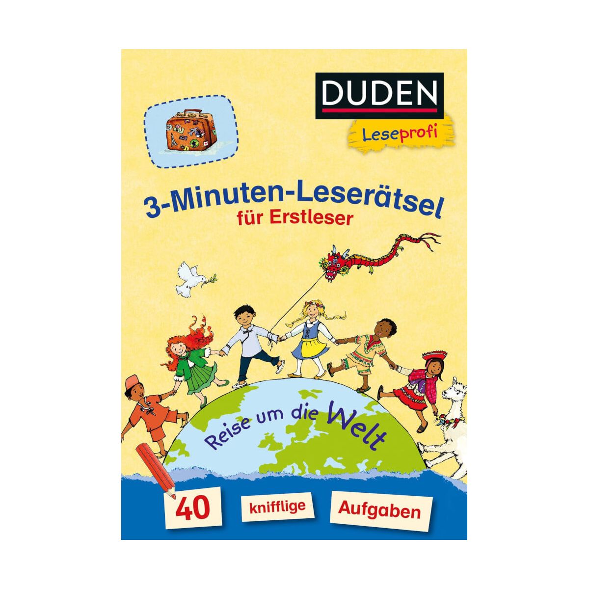 Lustige Leserätsel für Weltentdecker!Ob zu Hause auf der Couch, in den Ferien oder ganz woanders: Für diese spannenden Leserätsel zum spannenden Thema ''Weltreise'' ist immer Zeit! In nur 3 Minuten haben die Erstleser ein Rätsel gelöst und mittels der Lösung auf der Rückseite herausgefunden, ob sie richtig liegen. Mit Länderflaggen zu 40 Ländern!Bei diesem Knobelspaß geschieht die Leseförderung ganz nebenbei!Duden – von Anfang an richtig! Lesen lernen leicht gemacht: Rätsel für Erstleser ab der 1. Klasse zum Thema ''Weltreise''Alle Produkte aus der Reihe Duden Leseprofi werden von einer pädagogischen Fachberatung geprüft.Weitere Titel der Reihe: 3-Minuten-Leserätsel für Erstleser: Im Fußballfieber.3-Minuten-Leserätsel für Erstleser: Zauberhafte Fabelwelt. 3-Minuten-Leserätsel für Erstleser: Riesengroßes Pferdeglück. 3-Minuten-Leserätsel für Erstleser: Es weihnachtet sehr. 3-Minuten-Leserätsel für Erstleser: Endlich Ferien! 3-Minuten-Leserätsel für Erstleser: Allerbeste Freunde. 3-Minuten-Leserätsel für Erstleser: Einfach magisch • 3-Minuten-Leserätsel für Erstleser: Einfach tierisch.3-Minuten-Leserätsel für Erstleser: Rund um die Schule . 3-Minuten-Leserätsel für Erstleser: Vorsicht, Dinos! Der extradicke 3-Minuten-Leserätsel-Block für Erstleser. Der superspannende 3-Minuten-Leserätsel-Block für Erstleser.