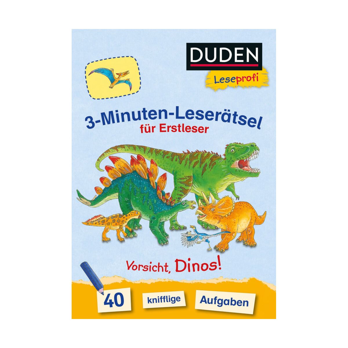 Gigantische Leserätsel für Dinofans!Ob zu Hause auf der Couch, in den Ferien oder ganz woanders: Für diese spannenden Leserätsel zum beliebten Thema ''Dinosaurier'' ist immer Zeit! In nur 3 Minuten haben die Erstleser ein Rätsel gelöst und mittels der Lösung auf der Rückseite herausgefunden, ob sie richtig liegen. Schwierige Dinowörter sind in Silben farbig hervorgehoben. Bei diesem Knobelspaß geschieht die Leseförderung ganz nebenbei!Duden – von Anfang an richtig! Lesen lernen leicht gemacht: Rätsel für Erstleser ab der 1. Klasse zum Thema ''Dinosaurier''Alle Produkte aus der Reihe Duden Leseprofi werden von einer pädagogischen Fachberatung geprüft.Weitere Titel der Reihe: .3-Minuten-Leserätsel für Erstleser: Im Fußballfieber.3-Minuten-Leserätsel für Erstleser: Zauberhafte Fabelwelt. 3-Minuten-Leserätsel für Erstleser: Riesengroßes Pferdeglück.3-Minuten-Leserätsel für Erstleser: Es weihnachtet sehr.3-Minuten-Leserätsel für Erstleser: Endlich Ferien! .3-Minuten-Leserätsel für Erstleser: Allerbeste Freunde .3-Minuten-Leserätsel für Erstleser: Einfach magisch. 3-Minuten-Leserätsel für Erstleser: Einfach tierisch. 3-Minuten-Leserätsel für Erstleser: Rund um die Schule. 3-Minuten-Leserätsel für Erstleser: Reise um die Welt. Der extradicke 3-Minuten-Leserätsel-Block für Erstleser • Der superspannende 3-Minuten-Leserätsel-Block für Erstleser.