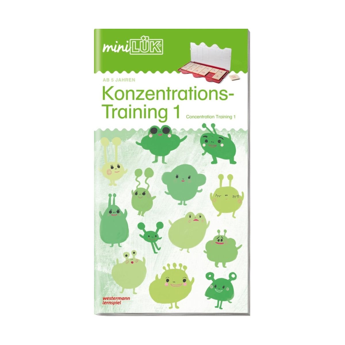 Stärkung von Ausdauer, Konzentration und Gedächtnisleistung-Konzentrationsfähigkeit ist eine der wichtigsten Voraussetzungen für die erfolgreiche Bewältigung schulischer Anforderungen. Kinder, die sich nicht oder nicht hinreichend konzentrieren können, werden auch im Lernen nicht vorankommen. Deshalb ist es von großer Bedeutung, gerade diesen Kindern Übungen zu geben, die ihr allgemeines Konzentrationsvermögen altersgemäß entwickeln und stärken. Vornehmlich Kinder im Alter von ca. 5 bis 7 Jahren, die durch Unruhe, Herumzappeln und ständige Unaufmerksamkeit auffallen, werden nachhaltig von diesen Übungen profitieren können. Das Heft trainiert die Konzentrationsfähigkeit und gleichzeitig viele andere psychische Grundlagen, die für das Lernen von herausragender Bedeutung sind: Die visuelle Wahrnehmungsfähigkeit, die bei vielen Vor- und Grundschulkindern nur unzureichend ausgebildet ist, die Gedächtnisfähigkeit, die Ausdauer, das Durchhaltevermögen, die Informationsverarbeitungs-Geschwindigkeit und vieles mehr. Es ist für alle Kinder geeignet, die ihre Lernvoraussetzungen verbessern wollen.Inhalt2 Lauter Autos 4 Minipuzzles zum Zusammensetzen 6 Kunterbunte Bienen 8 Farbige und schwarze Mandalas 10 Gespiegelte Fische 12 Versteckte Formen 14 Allerlei Holzspielzeug 16 Ausgesparte Kreisformen 18 Schiffe zuordnen 20 Flusspferd - Puzzles 22 Nächtliche Gespensterstunde 24 Gleiche Richtungen 26 Fröhliche Zirkusclowns 28 Weiße SchattenbilderZur Bearbeitung dieses Übungsheftes benötigen Sie das miniLÜK-Lösungsgerät..