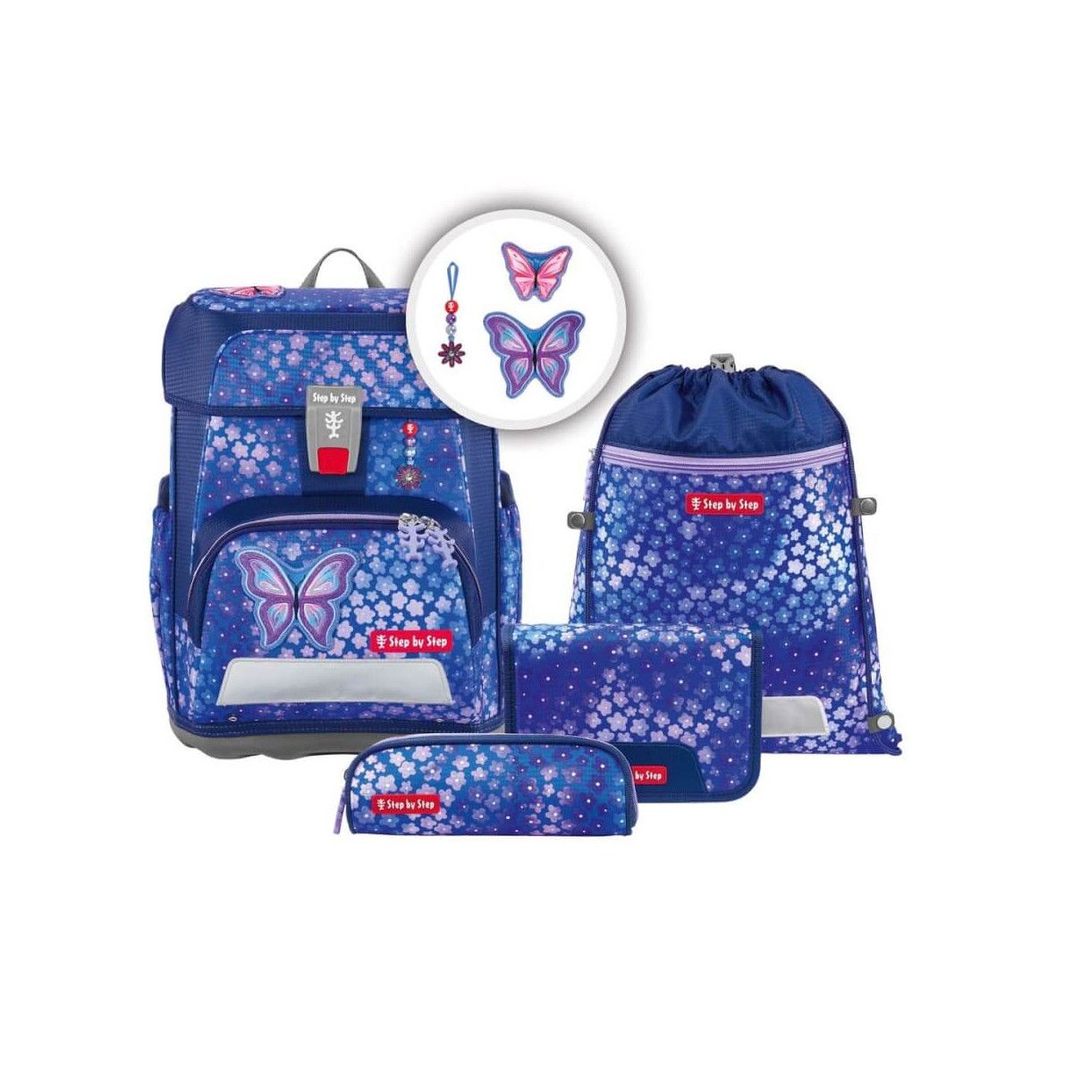 zur Beförderung von Schulutensilien vom Stift bis zum Sportzeug 5-teiliges Schulranzen-Set bestehend aus: Schulranzen Federmäppchen, komplett bestückt Schlamperetui Turnbeutel MAGIC MAGS (2 Applikationen und 1 Anhänger) Schulranzen: der leichte Schulranzen nur ca. 990 g wechselbare Motive, MAGIC MAGS EASY GROW SYSTEM: Schulranzen wächst von der 1. bis zur 4. Klasse mit ultraleichte, elastische Fiberglas-Rückenkonstruktion und ergonomisch geschwungene, atmungsaktive Rückenpartie verstellbare und ergonomische Schultergurte Lageverstellriemen zur körpernahen Schulranzen-Positionierung abnehmbarer, höhenverstellbarer Brustgurt Gurtenden-Einhängung gepolsterte, abnehmbare Hüftflosse isolierte, nach außen wachsende Fronttasche mit Auslaufösen zwei offene, nach außen wachsende Seitentaschen mit Auslaufösen Aufhängeschlaufe Fidlock-Magnetverschluss Hauptfach mit Bücherfach Laschen zur Aufbewahrung des Federmäppchens im Deckel wasserdichte Bodenplatte reflektierende Elemente sorgen für Sicherheit im Straßenverkehr und bei Dunkelheit strapazierfähiges und wasserabweisendes Material mit 100% PFC-freier Beschichtung die Textilien bestehen zu 100% aus recycelten PET-Flaschen Verbraucherhinweis: Die Bestandteile des MAGIC MAGS-Zubehörs lassen sich beliebig oft von den entsprechenden Flächen des Schulranzens abnehmen und durch andere MAGIC MAGS ersetzen. Diese sind in 3er-Sets separat erhältlich. Für eine neutrale Gestaltung des Ranzens können die MAGIC MAGS einfach komplett weglassen werden, ohne dass störende Klettflächen entstehen. So wird jeder Schulranzen zum Unikat. Das Gewicht des Schulranzen-Korpus ohne abnehmbare Elemente.