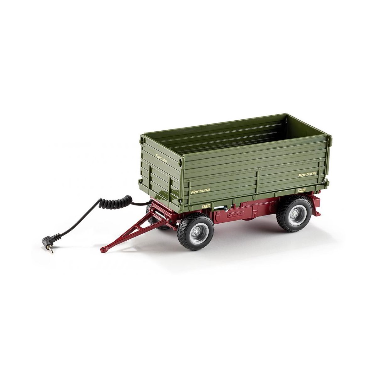 Elektronisch gesteuerten Zweiseiten-Kippanhänger mit Drehschemel und Deichsel. Die Mulde des Anhängers ist elektronisch sowohl nach rechts als auch nach links kippbar. Hierzu kann das bereits vorhandene Fernsteuermodul genutzt werden. Im Heckbereich des Anhängers sorgen rote und orangene LEDÂ's für Rücklicht und Blinker. Dieser Artikel wird über ein mitgeliefertes Datenkabel vom Anhänger zum Traktor mit Energie versorgt. Ein weiterer Akku mit Ladegerät wird für den Spielbetrieb nicht benötigt. Bitte beachten: Die Modellvariante ohne eigene Stromversorgung ist erst seit Januar 2012 erhältlich. Sollten Sie über eine ältere Version des Modells verfügen, so besitzt dieses noch eine eigene Stromversorgung. Neben dem Akku Art. 6702 (im Lieferumfang enthalten) wird in diesem Fall noch das Ladegerät Art. 6706 (nicht im Lieferumfang enthalten) für den Spielbetrieb benötigt! Ab 3 Jahren.