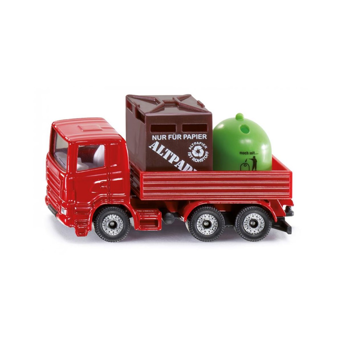 Detailliertes Spielzeugmodell eines Recycling-Transporters mit 1 Altpapier- und 1 Glas-Container zum Spielen und Sammeln - Robustes und stabiles Design dank Metallkarosserie, Sehr gute Rolleigenschaften durch Bereifung aus Kunststoff, Anhängerkupplung zur Kombination mit Anhängern im gleichen Maßstab - Ideal als Geschenk für Kinder zu bspw. Geburtstagen oder für zwischendurch geeignet, aber auch als Dekoration für Erwachsenen-Geburtstage oder Hochzeitsgeschenke - Perfekt zum platzsparenden Mitnehmen, Langanhaltender Spielspaß durch unzählige Kombinationsmöglichkeiten innerhalb der SIKU Spielwelt - Lieferumfang: 1x SIKU 0828 Recycling-Transporter, Inkl. 2 Container, Material: Metall/Kunststoff, Abmessungen: 8,0 x 2,8 x 4,3 cm, Gewicht: 0,046 kg, Farbe: Rot.
