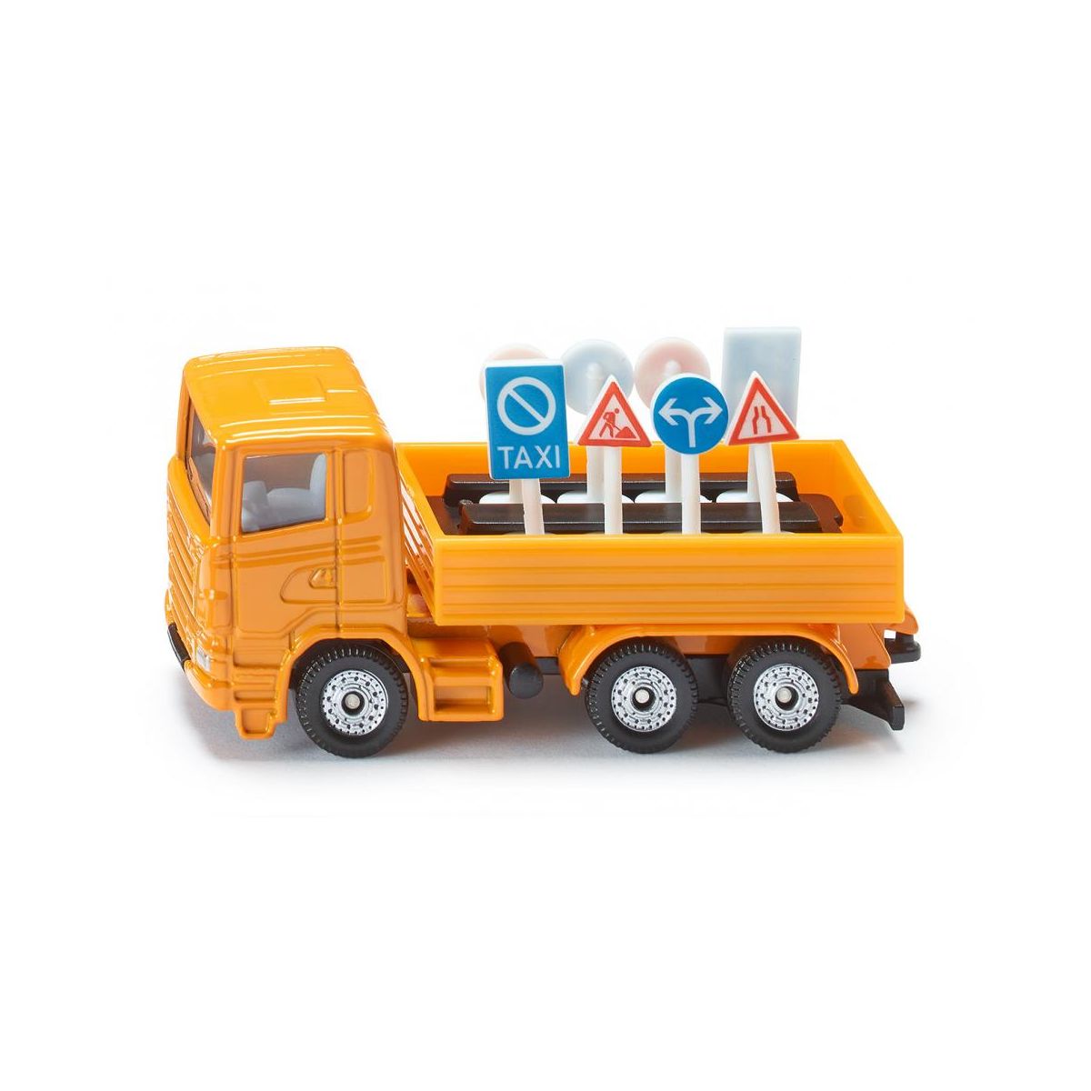 Detailliertes Spielzeugmodell eines LKW mit 8 unterschiedlichen Verkehrszeichen in praktischem Träger zum Spielen und Sammeln, Für kleine und große Baustellen-Liebhaber - Robustes und stabiles Design dank Metallkarosserie, Sehr gute Rolleigenschaften durch Bereifung aus Kunststoff, Abnehmbarer Träger für Verkehrsschilder - Ideal als Geschenk für Kinder zu bspw. Geburtstagen oder für zwischendurch geeignet, aber auch als Dekoration für Erwachsenen-Geburtstage oder Hochzeitsgeschenke - Perfekt zum platzsparenden Mitnehmen, Langanhaltender Spielspaß durch unzählige Kombinationsmöglichkeiten innerhalb der SIKU Spielwelt - Lieferumfang: 1x SIKU 1322 LKW mit Verkehrszeichen, Material: Metall/Kunststoff, Abmessungen: 8,0 x 2,8 x 3,9 cm, Gewicht: 0,045 kg, Farbe: Orange.