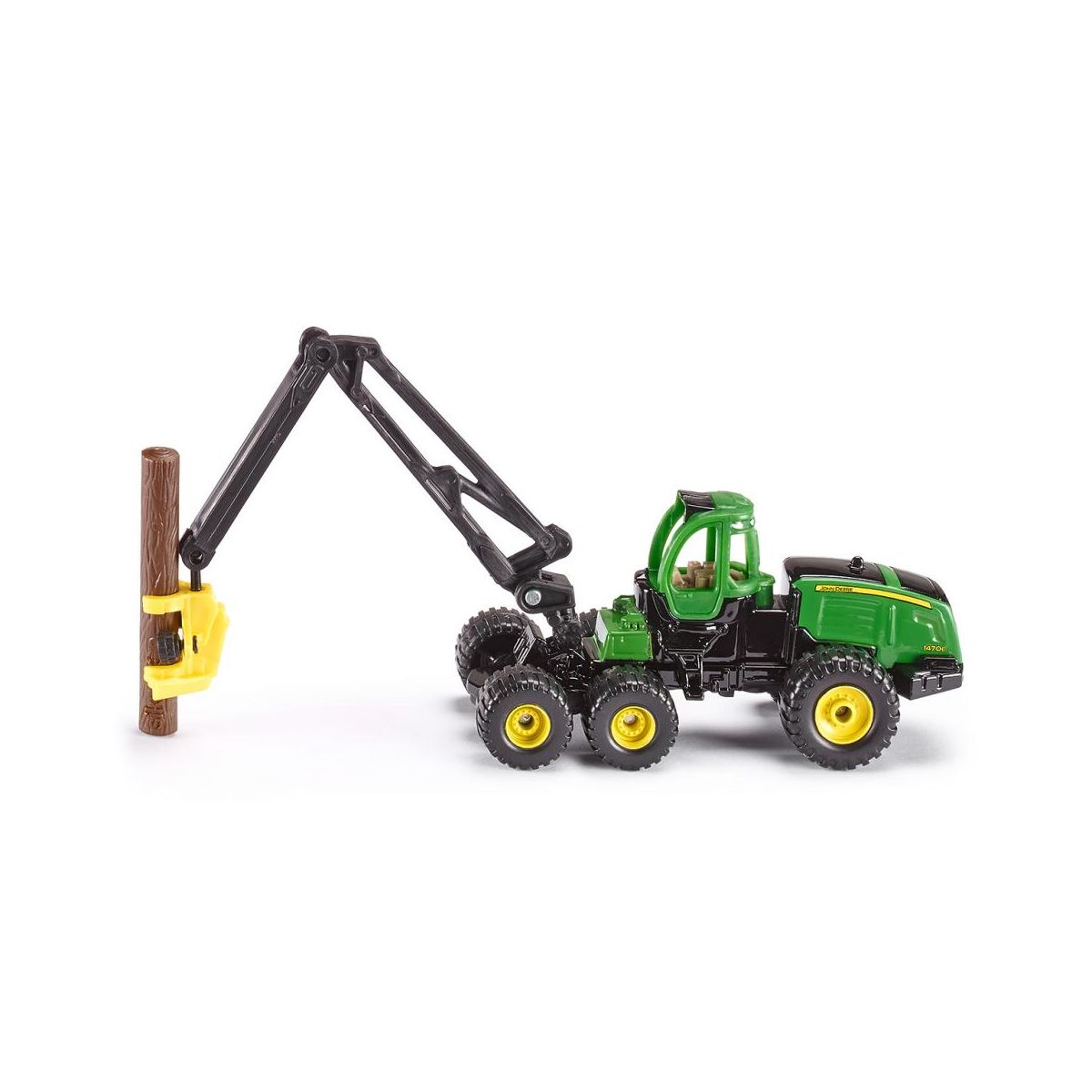 Detailliertes Spielzeugmodell eines John Deere Harvester zum Spielen und Sammeln, Für kleine und große Forstwirtschaftsliebhaber - Robustes und stabiles Design dank Metallkarosserie, Sehr gute Rolleigenschaften durch Bereifung aus Gummi, Dreh- und schwenkbarer Kran, Inkl. 1 Baumstamm, Greifer zum Transport von Baumstämmen - Ideal als Geschenk für Kinder zu bspw. Geburtstagen oder für zwischendurch geeignet, aber auch als Dekoration für Erwachsenen-Geburtstage oder Hochzeitsgeschenke - Perfekt zum platzsparenden Mitnehmen, Langanhaltender Spielspaß durch unzählige Kombinationsmöglichkeiten innerhalb der SIKU Spielwelt - Lieferumfang: 1x SIKU 1652 John Deere Harvester, Material: Metall/Kunststoff, Abmessungen: 13,2 x 3,5 x 8,2 cm, Gewicht: 0,063 kg, Farbe: Grün.