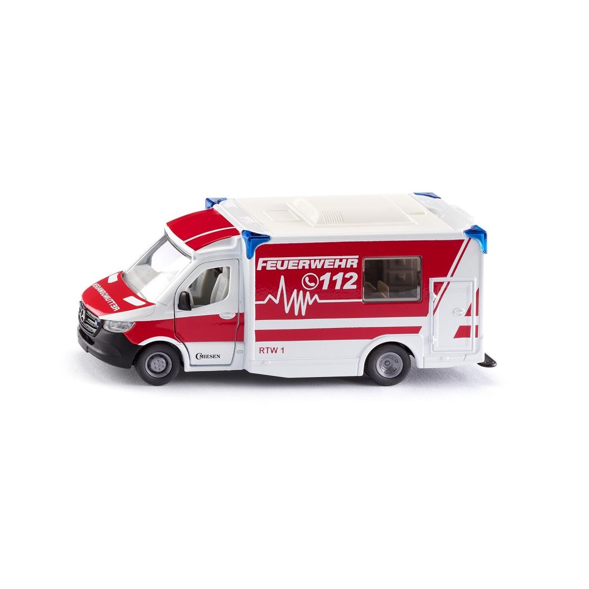 Detailliertes Spielzeugmodell eines Mercedes-Benz-Rettungswagens zum Spielen und Sammeln, Für kleine und große Rettungsdienst-Fans - Robustes und stabiles Design aus Metall und Kunststoff, Abnehmbares Dach, Türen zum Öffnen, Sehr gute Rolleigenschaften durch Bereifung aus Gummi, Inkl. Trage und Spineboard - Ideal als Geschenk für Kinder zu bspw. Geburtstagen oder für zwischendurch geeignet, aber auch als Dekoration für Erwachsenen-Geburtstage oder Hochzeitsgeschenke - Perfekt zum platzsparenden Mitnehmen, Langanhaltender Spielspaß durch unzählige Kombinationsmöglichkeiten innerhalb der siku-Spielwelt - Lieferumfang: 1x siku 2115 Mercedes-Benz Sprinter Miesen Typ C Rettungswagen, Inkl. Trage und Spineboard, Maßstab: 1:50, Material: Metall/Kunststoff, Abmessungen: 13,3 x 4,8 x 5,2 cm, Gewicht: 0,246 kg, Farbe: Rot/Weiß, Serie: SIKU SUPER.