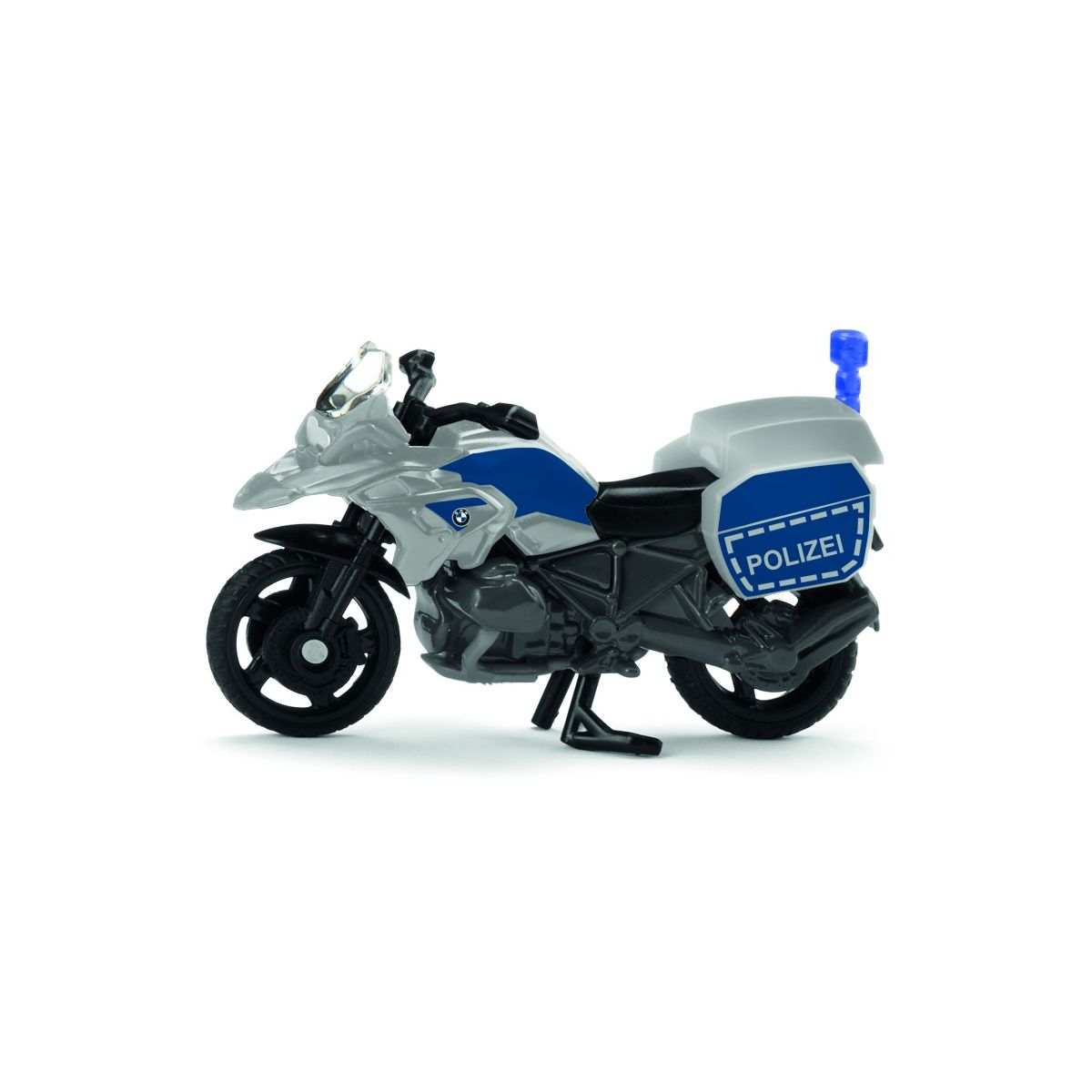 BMW Polizeimotorrad Achtung, Achtung, hier kommt die Polizei! Es gibt Einsätze, da setzt die Polizei auf die Motorrad-Staffel. Zum Beispiel bei Einsätzen im dichten Straßenverkehr oder auf der Autobahn – denn die wendigen Zweiräder kommen selbst auf engen und schwer zugänglichen Straßen schnell voran. Beim Anblick dieser Maschine schlagen dann nicht nur die Herzen von Motorrad-Fans, sondern auch die der Polizisten höher: Schließlich ist die BMW R1250 GS LCI seit Jahren das meistverkaufte Motorrad in Deutschland und mittlerweile seit Jahrzehnten eine echte Ikone! Als Einsatz-Fahrzeug kommt die PS-starke Maschine im charakteristischen Blau-Silber der Polizei mit neongelben Streifen daher. Selbstverständlich in dieser Ausstattung inkludiert: Ein Blaulicht, damit auch bei der Verfolgungsjagd im Kinderzimmer andere Verkehrsteilnehmer und Passanten rechtzeitig gewarnt sind. Rahmen und Tank der Maschine sind aus Metall, Lenker und Ständer beweglich und die Räder mit echten Gummireifen ausgestattet. Damit bietet dieser Motorrad-Klassiker realistischen Spielspaß für kleine und große PS-Fans!.