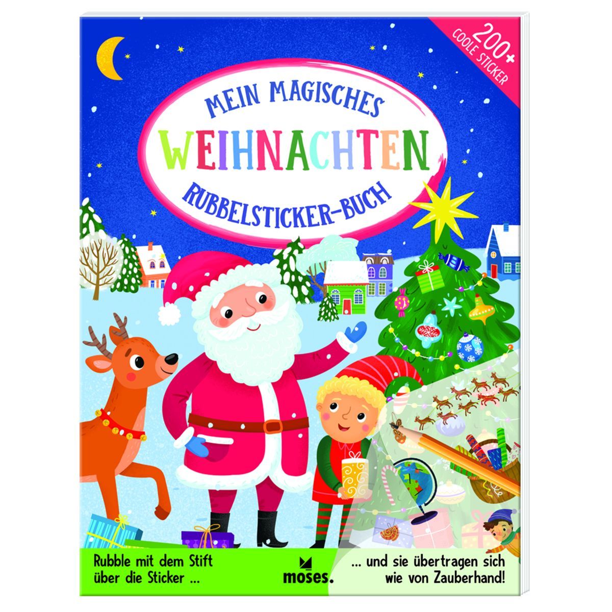 Gestalte eine magische Weihnachtswelt mit dem Weihnachtsmann und seinen Rentieren, einem belebten Weihnachtsmarkt, den Weihnachtselfen und vielem mehr. Dieses tolle Buch ist vollgepackt mit mehr als 200 Rubbelstickern, mit denen alle weihnachtlichen Szenen vervollständigt werden können. Alles, was du brauchst, ist ein Stift, um die Sticker von den Folien ins Buch zu übertragen. Dieser kreative Stickerspaß darf in der Weihnachtszeit nicht fehlen! + bunte Szenen zum Bestickern und kurze Texte + kreativer Stickerspaß, der Weihnachtsgefühle weckt + mit über 200 Rubbelstickern + Sticker auf der gewünschten Stelle platzieren, mit einem Bleistift darüber rubbeln – fertig! Text: Toni Stemp llustration: Anna Guz.