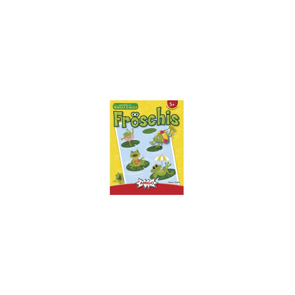 Fröschis MBE3 Lasst die Fröschis hüpfen! Die Zahlenwerte der eigenen Kartenreihe sollen mit Hilfe der Fröschis aufsteigend angeordnet werden. Gar nicht so einfach, wenn in dem Teich auch noch unnütze Dinge herumschwimmen, die so gar nicht in die Zahlenreihe passen! Durch geschicktes Tauschen der Karten hüpfen die Fröschis in großen Sprüngen durch die Kartenreihe. Ein Kinderspiel von Erfolgsautor Haim Shafir mit großem Spaßfaktor. Das Spiel Fröschis steht auf der Empfehlungsliste Kinderspiel des Jahres 2022 So spielt man Fröschis MBE3: * Jeder startet mit 8 verdeckten Karten vor sich und versucht diese Karten durch Aufdecken und Umsortieren zu einer aufsteigenden Reihe von 1 bis 8 zu legen. * Wer am Zug ist, zieht eine Karte: * Ist es eine Zahlenkarte, wird sie an die entsprechende Stelle in der aufsteigenden Zahlenreihe der eigenen Kartenauslage einsortiert. Die dort liegende Karte, die durch eine Zahlenkarte ersetzt wurde, wird wiederum an die richtige Stelle der Zahlenreihe einsortiert. Liegt an der passenden Stelle schon eine offene Karte, endet der Zug. * Ist es eine Mu¨llkarte, endet der Zug. * Frösche können einen beliebigen Zahlenwert annehmen und somit auf eine beliebige Position in der Kartenreihe gelegt werden. * Wer zuerst alle 8 Karten sortiert bzw. aufgedeckt hat, gewinnt die Runde und spielt in der nächsten Runde mit einer Karte weniger. Hierbei entfällt in der nachfolgenden Runde der höchste Kartenwert der Kartenreihe. * Das geht so lange, bis ein Spieler nur noch eine Karte hat und die Runde gewinnt. Inhalt: * 60 Spielkarten * 1 Spielanleitung Maße: 12,5 x 9,8 x 2,3 cm Autor: Haim Shafir Grafik: Marina Zlochin Erfolgsfaktoren: * Von Erfolgsautor und Halli Galli-Erfinder Haim Shafir * Schnell erklärt, schnell gespielt * Lernspiel des Monats (Stuttgarter Spielemesse, 11/2021) * Auf der Empfehlungsliste Kinderspiel des Jahres 2022.