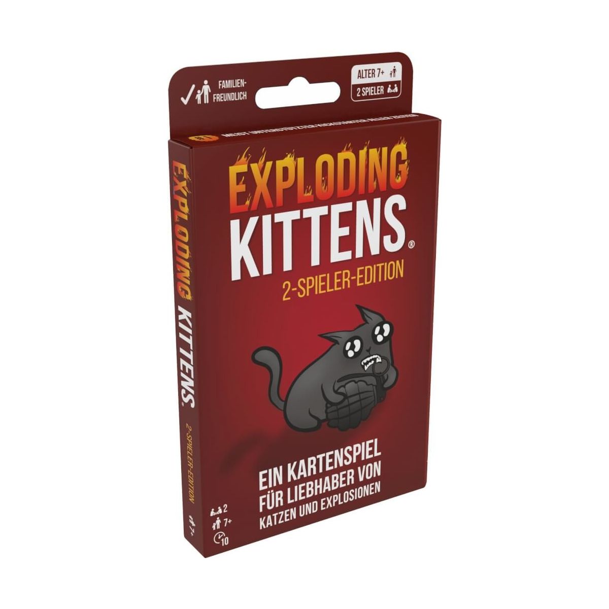 Das Kartenspiel für Liebhaber von Katzen und Explosionen und Laserstrahlen und … manchmal Ziegen endlich als 2-Spieler-Edition. Exploding Kittens ist das explosionsstärkste Katzenspiel (ähm, Kartenspiel) aller Zeiten! Eine taktische Version von russischem Roulette – nur eben mit Kätzchen statt Patronen. Die Exploding Kittens: 2-Spieler-Edition bietet ein schnelleres Gameplay, das speziell für zwei Spieler entwickelt wurde. Sie kann auch als Erweiterung für das Grundspiel verwendet werden. Als kleinere, handliche Version eignet sich das Spiel perfekt für unterwegs..
