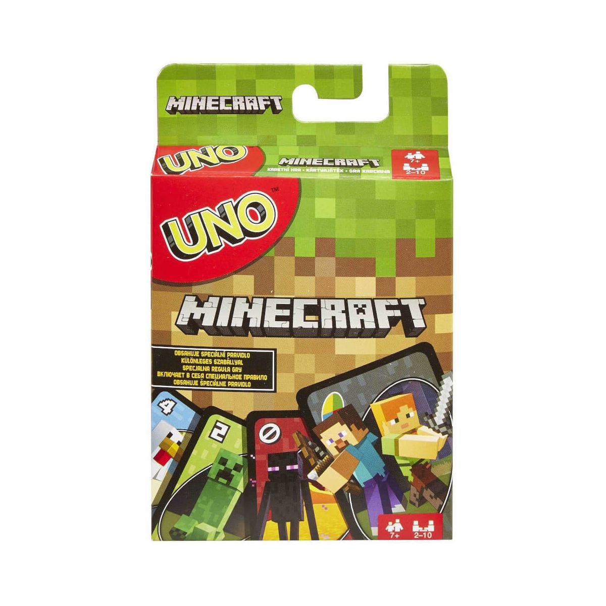 Wie beim beliebten UNO-Spiel geht es auch bei UNO Minecraft darum, als erster Spieler alle Karten abzulegen. Doch bei dieser Version sind auf den Karten Charaktere und Bilder aus Minecraft, und es gibt eine besondere Regel! Wenn die letzte Karte auf der Hand eines Spielers zur gerade auf dem Ablegestapel oben liegenden Karte passt, sammelt der Spieler Punkte für Karten, die seine Gegner noch auf der Hand halten. Und bei UNO Minecraft gibt es neue Aktionskarte: Wenn der Spieler die Creeper-Karte zieht, zeigt er sie den anderen Spielern, die dann drei weitere Karten ziehen müssen! Gewonnen hat der Spieler, der als Erster 500 Punkte hat. Ganz wichtig: Wer nur noch eine Karte auf der Hand hat, muss UNO! rufen. Enthält 112 Karten plus Spielregeln. Für 2 bis 10 Spieler ab 7 Jahren. Wer einmal anfängt, hört nie wieder auf. Abweichungen in Farbe und Gestaltung vorbehalten..