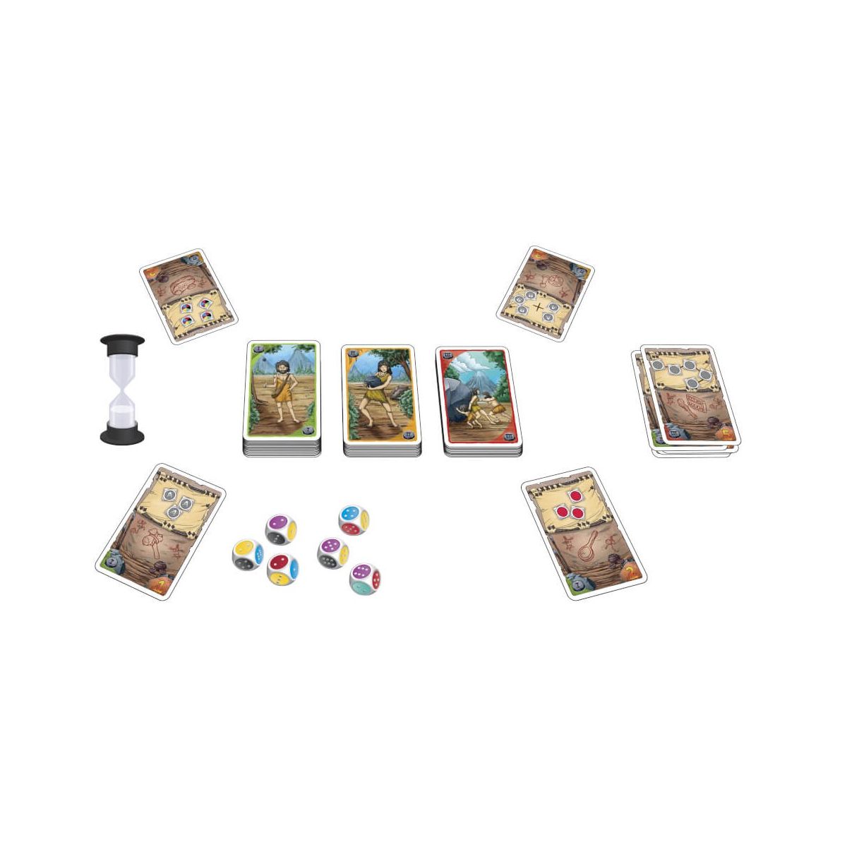 Milestones MBE3 Haltet zusammen! So lautet das Motto in diesem kooperativen Würfelspiel. Andernfalls wird es nämlich nichts mit den frühzeitlichen Meilensteinen, die man als Gruppe erreichen möchte. Jeder kennt zwar die eigenen Ziele, aber nicht die der anderen. Und dann müssen auch noch die Würfel von allen gemeinsam genutzt werden! Absprechen ist nicht erlaubt und die Zeit drängt unerbittlich. Wie bedeutend wird der gemeinsame Erfolg für die Steinzeit-Würfler? So spielt man Milestones MBE3: * Gemeinsam erfüllen die Spieler möglichst viele Aufgabenkarten. Jeder Spieler hat dabei genau eine Karte auf der Hand, die er vor den anderen geheim halten muss. * Reihum würfeln die Spieler die Würfel aus einem gemeinsamen Würfelpool. Dabei entscheidet jeder für sich, wie viele der Würfel er neu würfelt, wenn er an der Reihe ist. * Wird die als Aufgabe auf einer Karte vorgegebene Zahlen- oder Farbkombination durch die Würfel erfüllt, legt der Spieler die Karte auf den gemeinsamen Punktestapel und zieht eine neue Handkarte nach. * Nach drei Minuten endet das Spiel und die Spieler zählen die gemeinsam erreichten Siegpunkte. * In verschiedenen Varianten wird das Spiel anspruchsvoller durch z. B. Pflichtaufgaben, die offen ausliegen, oder eine Sanduhrkarte, die den Spielern mehr Zeit einräumt. Inhalt: 55 Aufgabenkarten 6 Würfel 1 Sanduhr 1 Spielanleitung Maße: 16,8 x 12,6 x 3,5 cm Autor: Christian Stöhr & Daniela Stöhr Grafik: Fiore GmbH Erfolgsfaktoren: * Flexible Spieldauer ab 3 Minuten * Unterhaltsames Spielgeschehen durch individuelle Einzelziele, aber kooperativem Gesamtziel * Hoher Wiederspielreiz durch Highscore-Prinzip.