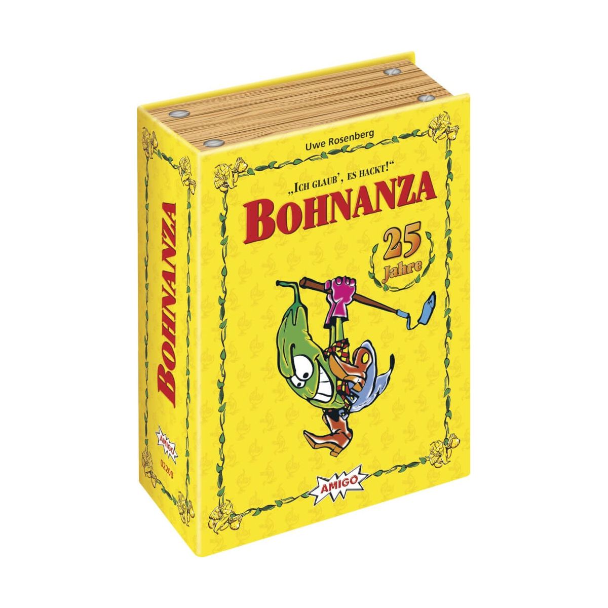 Bohnanza 25 Jahre-Edition Fix6 Seit 25 Jahren lassen fleißige Bohnengärtner zahlreiche Bohnen auf ihren Feldern gedeihen, um ertragreiche Ernten einzufahren. Baue wertvolle Bohnensorten auf deinen Feldern an und handle geschickt Bohnenkarten mit deinen Mitspielern. Entscheide dich im richtigen Moment dafür, deine Ernte einzuholen und damit wichtige Bohnentaler zu erhalten. Denn wehe, du verkaufst deine Ernte zu früh ? Neben den bekannten Bohnen aus dem Grundspiel und dem Erweiterungs-Set bringt die diebische Elsterbohne eine neue Option: Klaue Bohnenkarten von fremden Feldern und lege sie auf deine eigenen! Zeige deinen grünen Daumen und sammle die meisten Bohnentaler! Das steckt in der Bohnanza 25 Jahre-Edition: * Grundspiel: mit den bekannten acht Bohnensorten für 3?5 Personen * Erweiterungs-Set: drei weitere Bohnensorten für bis zu 7 Personen sowie die Ackerbohne zum Erwerb eines dritten Bohnenfeldes * Das Duell: eine Regel-Variante für 2 mit Bohnensorten des Grundspiels und des Erweiterungs-Sets * Der AMIGO-Bohnentaler: eine heiß begehrte Münze im Grundspiel, die ihrem Besitzer Vorteile im Spiel verschafft * Die Elsterbohne: eine exklusive, neue Bohnensorte, die in verschiedenen Bohnanza-Varianten eingesetzt werden kann ? im eigenen Zug ausgespielt klaut der aktive Spieler mit ihr Bohnen von fremden Feldern So spielt man Bohnanza 25 Jahre-Edition Fix6: * Grundspiel: mit den bekannten acht Bohnensorten für 3?5 Personen * Erweiterungs-Set: drei weitere Bohnensorten für bis zu 7 Personen sowie die Ackerbohne zum Erwerb eines dritten Bohnenfeldes * Das Duell: eine Regel-Variante für 2 mit Bohnensorten des Grundspiels und des Erweiterungs-Sets * Der AMIGO-Bohnentaler: eine heiß begehrte Münze im Grundspiel, die ihrem Besitzer Vorteile im Spiel verschafft * Die Elsterbohne: eine exklusive, neue Bohnensorte, die in verschiedenen Bohnanza-Varianten eingesetzt werden kann ? im eigenen Zug ausgespielt klaut der aktive Spieler mit ihr Bohnen von fremden Feldern Inhalt: * 174 Spielkarten * 7 Bohnenfeld-Ablagen * 1 Bohnentaler * 1 Spielanleitung * 1 Gummiband BOHNANZA * 2 Autogrammkarten Maße: 16 x 11,9 x 5,4 cm Autor: Uwe Rosenberg Grafik: Björn Pertoft Erfolgsfaktoren: Jubiläumsausgabe mit exklusiven Beilagen: - 1 Bohnentaler - 2 Autogrammkarten, vom Autor und Illustrator - neue Elsterbohnen sowie einer extra Spielregel für 2 Personen!.