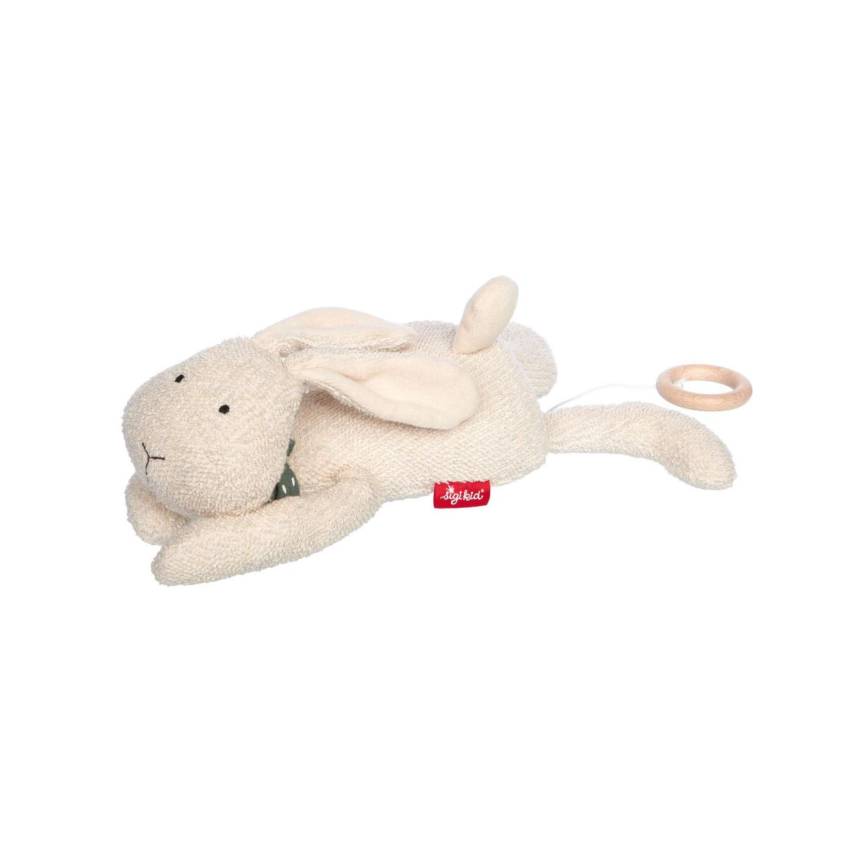 Es ist wissenschaftlich belegt, dass sich Babys bereits im Mutterleib an ihre Umgebungsgeräusche gewöhnen und auch binden. Dazu gehören die Stimmen von Mama und Papa ebenso wie alle anderen sich immer wiederholenden Geräusche im nahen Umfeld. Die Mamilodie-Spieluhr ist in Größe und Form ideal geeignet, um auf dem Babybauch zu liegen und das Kind mit der beruhigenden Schlafmelodie bereits vor der Geburt vertraut zu machen. Das süße cremeweiße Häschen ist etwa 36x15x11 cm groß und besteht aus angenehmer Schlingenware aus 100% Baumwolle. Auch nach der Geburt ist die Spieluhr der perfekte Begleiter für Babys und Kleinkinder. Der Hase mit den Schlappohren dient als Kuscheltier, Tröster und Babyspielzeug. Zahlreiche Greifmöglichkeiten helfen den Kleinsten beim Entwickeln ihrer motorischen Fähigkeiten. Die Spieluhr wird mit einer von fünf Schlafmelodien - zufällig ausgewählt - ausgeliefert. Für Fragen zu speziellen Melodie-Wünschen wenden Sie sich gerne an den Hersteller. Das mechanische Spielwerk lässt sich durch einfaches Ziehen am Buchenholzring starten. Das Gesicht ist gestickt und der Körper ist weich mit hygienischer Polyesterwatte gefüllt. Das Halstuch ist fest fixiert, damit kein Verschlucken möglich ist. Die kuschelig weichen Stoffe sind hochwertig verarbeitet und halten auch häufiger Wäsche stand. Das Spielwerk nimmt man zum Waschen heraus - einfach den Sicherheitsreißverschluss mit einer Büroklammer (siehe Anleitung) öffnen und schon kann die Spielfigur bei 30 °C in der Waschmaschine gereinigt werden. Wir verwenden hochwertige Materialien, legen großen Wert auf ein liebevolles und kindgerechtes Design sowie eine faire, nachhaltige und qualitative Verarbeitung. sigikid ist daher mehr als ein Geschenk – sigikid ist ein Stück Kindheit, das bleibt. Unsere langlebigen Produkte begleiten Kinder über Jahre hinweg: beim Einschlafen, Spielen, Wachsen, Trösten, Lachen und manchmal sogar noch im Erwachsenenleben. Mit sigikid schenkst du nicht nur für den Moment, sondern fürs Leben!.