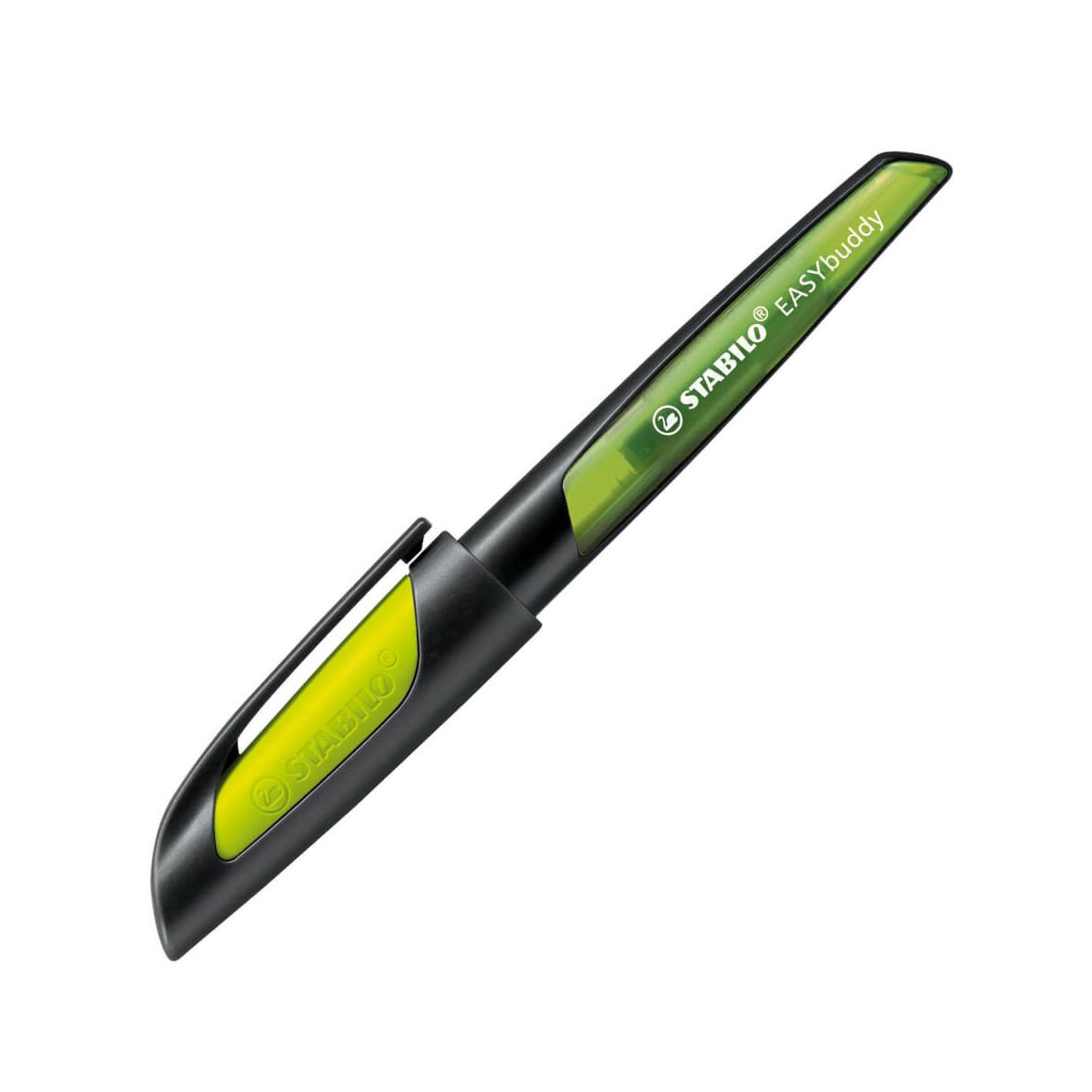 Schulfüller mit Anfänger-Feder A - STABILO EASYbuddy in schwarz/limette - Schreibfarbe blau (löschbar) - Einzelstift -