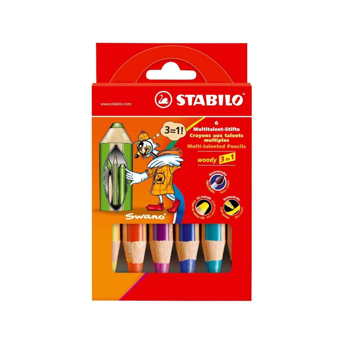 Der STABILO woody 3 in 1 ist ein außergewöhnliches Multitalent: Er ist Buntstift, Wassermalfarbe und Wachsmalkreide in einem.Mit seiner hohen Deckkraft und Farbintensität eignet er sich super für dunkles und schwarzes Papier sowie für Kratzbilder. Er lässt sich spielend leicht mit einem Pinsel aquarellieren und zaubert dabei tolle Kunstwerke aufs Papier. Auch auf glatten Oberflächen wie Glas und Metall funktioniert er hervorragend und lässt sich von Glas mit Wasser auch ganz einfach wieder entfernen. Der STABILO woody 3 in 1 ist so ergiebig wie acht Standard-Buntstifte. Seine runde und dicke Form eignet sich besonders für kleine Kinderhände..