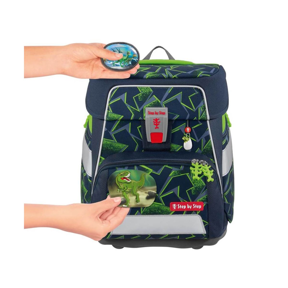 zur Beförderung von Schulutensilien vom Stift bis zum Sportzeug 5teiliges Schulranzen-Set bestehend aus: Schulranzen Federmäppchen, komplett bestückt Schlamperetui Turnbeutel MAGIC MAGS (2 Applikationen und 1 Anhänger) Schulranzen: der geräumige Schulranzen wechselbare Motive, MAGIC MAGS EASY GROW SYSTEM: Schulranzen wächst von der 1. bis zur 4. Klasse mit ultraleichte, elastische Fiberglas-Rückenkonstruktion und ergonomisch geschwungene, atmungsaktive Rückenpartie verstellbare und ergonomische Schultergurte Lageverstellriemen zur körpernahen Schulranzen-Positionierung abnehmbarer, höhenverstellbarer Brustgurt Gurtenden-Einhängung gepolsterte, abnehmbare Hüftflosse seitlich nach außen wachsende Reißverschluss und Fronttasche mit Auslaufösen Aufhängeschlaufe und gepolsterter Tragegriff Fidlock-Magnetverschluss Hauptfach mit Bücherfach Laschen zur Aufbewahrung des Federmäppchens im Deckel wasserdichte Bodenplatte reflektierende Elemente sorgen für Sicherheit im Straßenverkehr und bei Dunkelheit strapazierfähiges und wasserabweisendes Material mit 100% PFC-freier Beschichtung die Textilien bestehen zu 100% aus recycelten PET-Flaschen Verbraucherhinweis: Die Bestandteile des MAGIC MAGS-Zubehörs lassen sich beliebig oft von den entsprechenden Flächen des Schulranzens abnehmen und durch andere MAGIC MAGS ersetzen. Diese sind in 3er-Sets separat erhältlich. Für eine neutrale Gestaltung des Ranzens können die MAGIC MAGS einfach komplett weglassen werden, ohne dass störende Klettflächen entstehen. So wird jeder Schulranzen zum Unikat. Das Gewicht des Schulranzen-Korpus ohne abnehmbare Elemente beträgt ca. 1250 g. Das Gesamtgewicht des Schulranzens mit all.