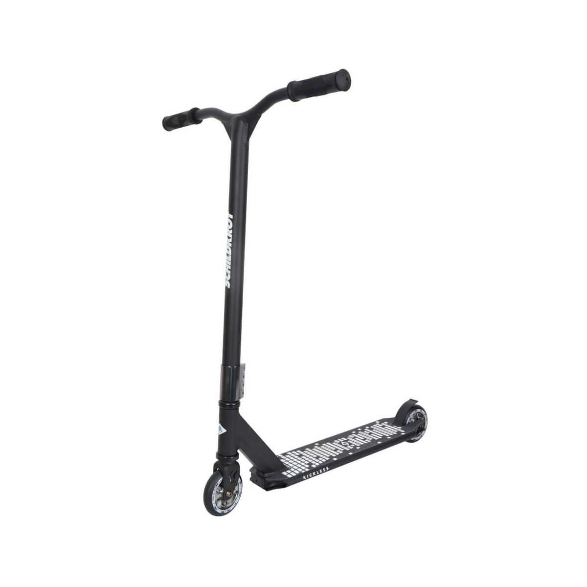 Der neue Kickless Stunt Scooter aus dem Traditionshaus Schildkröt besticht durch seine hochwertige Ausstattung (v.a. der HIC-Compression) bei gleichzeitig fairem Preis. Bestes Material, tolle Technologien, top Qualität! Der Kickless ist für den ambitionierten Fahrer und ermöglicht alle Tricks und Stunts. Durch das Deck aus gehärtetem hochwertigem 6061-Aluminium in Premium 3-fach Kastenbauweise ist der Scooter sehr verwindungssteif und robust. Das trendige Graphic Griptape macht das Deck sehr rutschfest und sorgt bei allen Tricks für sehr stabilen und sicheren Stand. Seitlich ist das Deck auf der Unterseite leicht abgeschrägt - es verfügt über sogenannte Grind Kanten (zum darauf rutschen = grinden). Der mit 54 cm sehr breite und 84cm hohe, verstärkte Y-Lenker wurde nochmals verbessert und ist ab Oktober 2020 aus hochwertigem Cromoly Stahl, der höchsten Beanspruchungen standhält. Die Gabel ist für maximale Stabilität aus bruchsicherem Stahl, die Gabel verfügt zusätzlich über optisch sehr edle CNC Ausfräsungen. Verbunden sind Lenkrohr und Gabel mit einer Vierfach-Klemme mit vier Inbusschrauben - die passenden Inbusschlüssel liegen bei. Die hochwertigen und komfortablen TPR Griffe sorgen stets für einen sicheren Halt und gute Schockabsorbtion. Premium HIC-Compression-Steuersatz (Hidden Internal Compression). Selbstverständlich ist der Lenker um 360 Grad drehbar für alle Tricks und Stunts. Die Lenkerhöhe ist 84 cm (vom Boden ausgemessen) und ist wie immer bei Stunt Scootern nicht höhenverstellbar. Am Hinterrad verfügt der Schildkröt Kickless über eine robuste Bremse aus abriebfestem Stahl für ein schnelles und sicheres Abbremsen des Scooters. Der Kickless ist werksseitig mit 100 mm Rollen aus griffigem PU ausgestattet (Härtegrad 88A), diese Rollen sind auf eloxierter Alu-Felgen montiert, die auch gröbere Stöße und Sprünge leichter wegstecken können. Leichtläufige Premium ABEC 9 Kugellager machen den Kickless perfekt. Der Schildkröt Kickless kommt vormontiert im Karton. Der Lenker muss mit beiliegendem Inbus Schlüssel angeschraubt werden, was aber keine wirkliche Herausforderung darstellt. Bitte Anleitung und Warnhinweise vor der ersten Fahrt gut durchlesen. Wir empfehlen das Tragen der entsprechenden Schutzausrüstung. Übrigens: Namensgeber für diesen tollen Scooter von Schildkröt ist der Stuntscooter Trick Kickless. Hierbei wird das Deck während des Sprungs um zuerst knapp 360 Grad weggedreht und dann noch vor der Landung wieder zurück. Auf alle Fälle ein sehr anspruchsvoller Trick - genau passend zu diesem neuen Stunt Scooter von Schildkröt. Über Schildkröt: Die über 100 Jahre alte deutsche Marke Schildkröt gilt als Erfinder des Tischtennisballs. Heute bietet Schildkröt neben Tischtennis auch eine sehr umfangreiche Funsport-, Rollsport- und Fitness-Kollektion an und gilt in gewissen Bereichen als Marktführer. Die Produktentwicklung erfolgt ausnahmslos in Deutschland. Die weltweiten Produktionsstätten werden streng überwacht und genügen höchsten Sozialstandards. Warnhinweise: ACHTUNG: vor Benutzung Gebrauchsanleitung lesen und beachten / Nur mit geeigneter Schutzausrüstung benutzen / Nicht im Straßenverkehr verwenden / maximales Nutzergewicht 100kg / Vor jeder Fahrt alle Komponenten auf festen Sitz und Unversehrtheit überprüfen / Nicht bei Dunkelheit oder schlechten Sichtverhältnissen fahren / Nur auf geeigneten Flächen die eben, sauber und trocken sind benutzen. / Altersempfehlung: 8+ / Die Aufsicht durch einen Erwachsenen wird dringend empfohlen!.