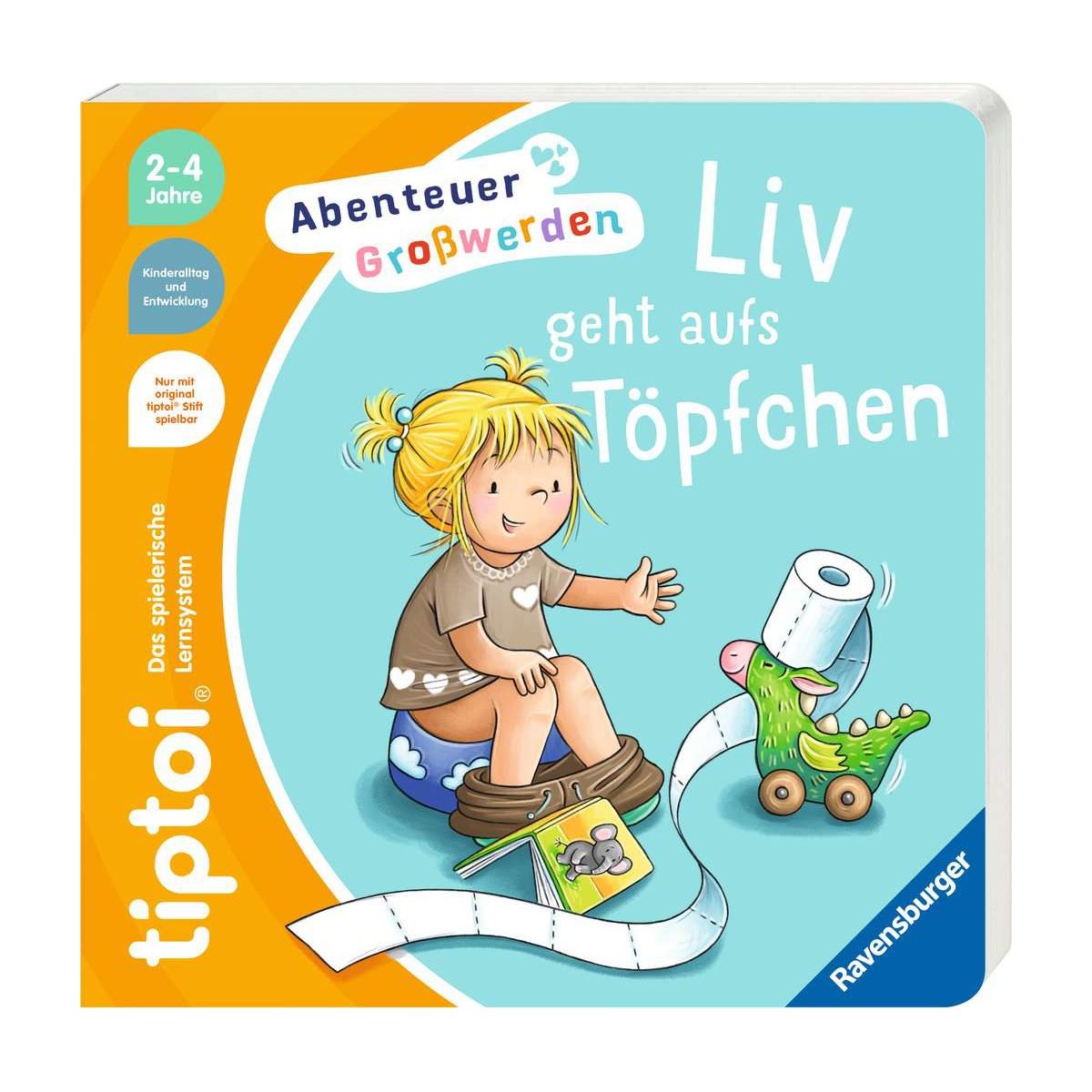 Wie ist das mit dem Töpfchen?Ab und zu wird Liv noch gewickelt. Aber nicht mehr lange - immer öfter klappt es ohne Windel. Mit Papa sucht Liv ein Töpfchen mit einem Drachen aus. Das nimmt sie auch mit in den Garten und an den See. Im Kindergarten traut sich Liv bald auf die Toilette. Mit Treppe und Toilettensitz funktioniert es auch zuhause. Liebevolle Illustrationen und kindgerechte Texte begleiten die Kinder auf dem Weg zum Sauberwerden. Abschließend fasst ein Hörspiel die Geschichte aus Sicht der Kinder zusammen.In dieser tiptoi Reihe für Kinder ab 2 Jahren dreht sich alles um das ''Abenteuer Großwerden. Wichtige Themen aus dem Kinderalltag werden liebevoll thematisiert und realitätsnah illustriert. In jedem Buch erlebt ein anderes Kind der Freundesgruppe eine spannende Geschichte und meistert eine große Herausforderung. Die kindgerechten Texte und ein Hörspiel am Ende machen altersrelevante Themen interaktiv und selbstständig erlebbar.tiptoi-Stift nicht enthalten. Muss separat erworben werden..