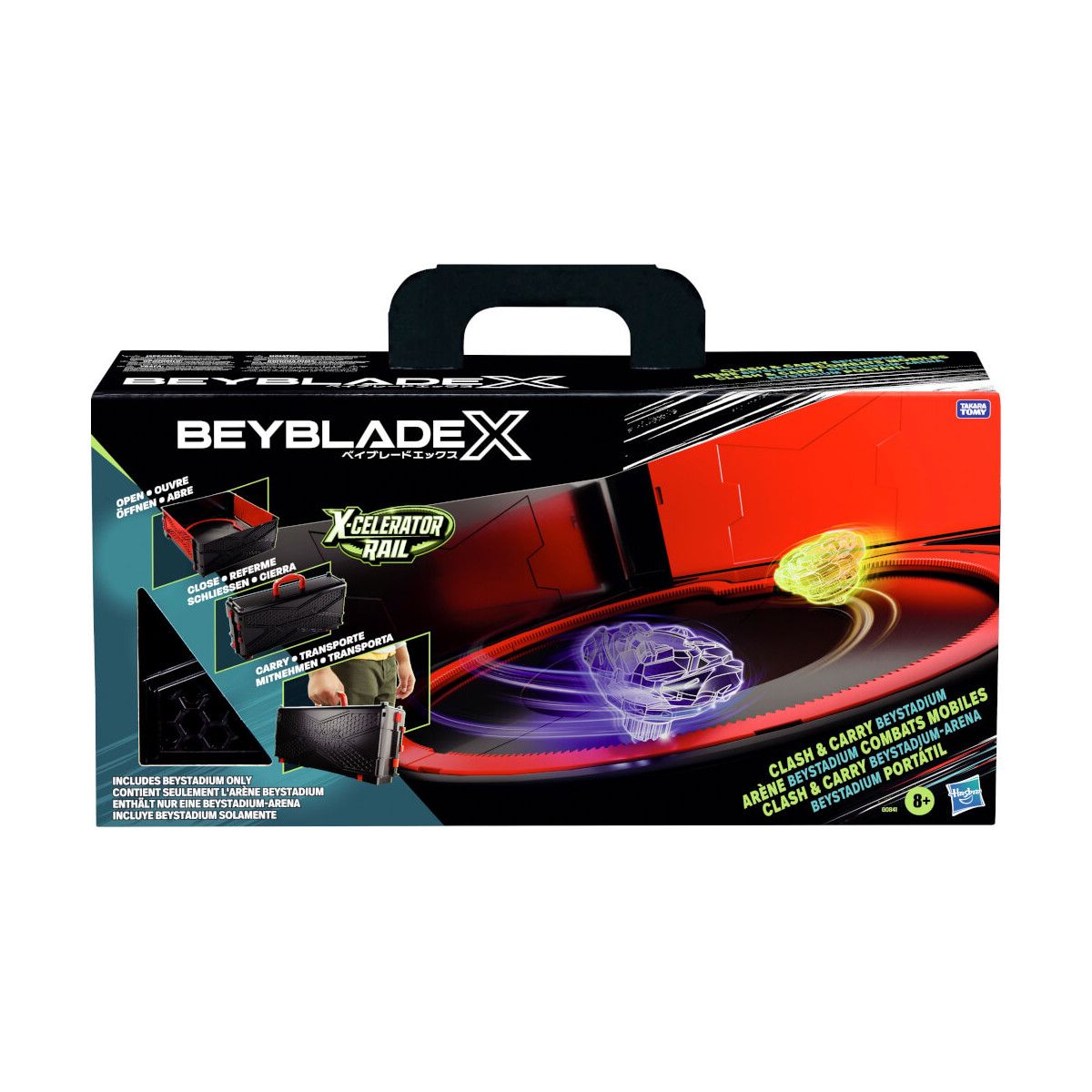 Die nächste Generation von Beyblade Stadium-Arenen, Startern und Kreiseln: Beyblade X. Hier können sich Blader ins Battle stürzen und Punkte erzielen. Wer zuerst 4 Punkte hat, gewinnt. Mit der Beyblade X Clash and Carry Beystadium-Arena kann der Kampf überall stattfinden! Dieses tragbare Stadion lässt sich in eine Kampf-Arena ausklappen und zum Transport und zur Aufbewahrung einfach zusammenklappen. Es wartet mit dem X-Celerator Beschleunigungssystem auf. Wenn das Zahnrad eines Beyblade X Kreisels in der Schiene der Arena einrastet, kann der Kreisel zu einem Xtreme Dash um die Arena herum superbeschleunigen, um spektakuläre Kollisionen zu verursachen. Durch Kombination der Beystadium-Arena mit Startern, austauschbaren Blades, Ratschen und Bits der Beyblade X Kreisel lässt sich ein eigener, unübertrefflicher Kreisel erschaffen. (Starter und Kreisel separat erhältlich, je nach Verfügbarkeit.) Eltern können den Code auf den Beyblade X Kreiseln scannen, um Kreisel in der Beyblade X App freizuschalten! Beyblade Kreisel mit authentischen Takara Tomy Teilen aus Metall eignen sich hervorragend als Geschenke für Kinder ab 8 Jahren. Hasbro sowie alle dazugehörigen Begriffe sind Marken von Hasbro..
