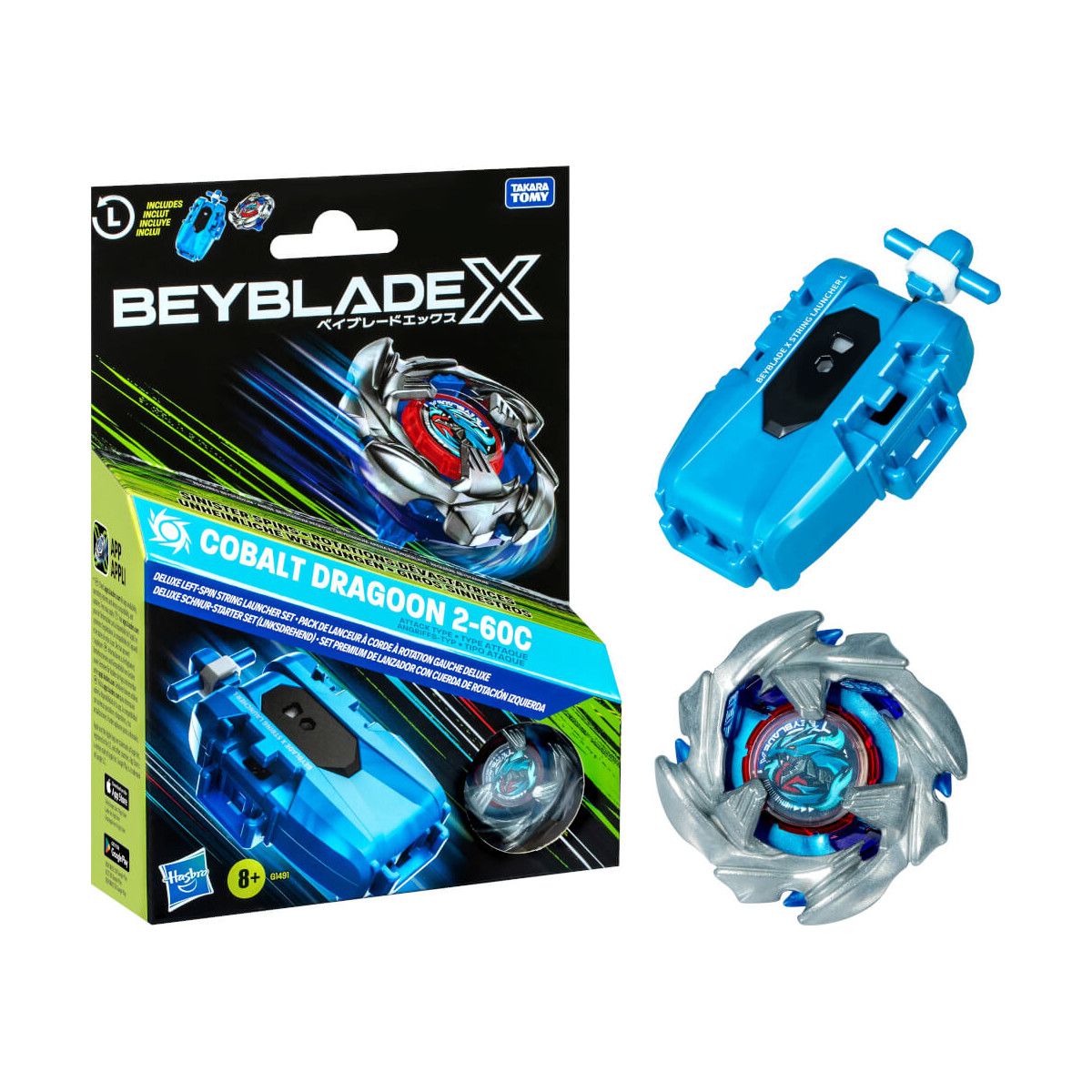 Die nächste Generation von Beyblade Kreiseln: Beyblade X. Das Beyblade X Cobalt Dragoon 2-60C Schnur-Starter Set unterstützt Fans auf ihrem Weg zum „Beyblade-Meister. Der linksdrehende Deluxe Schnur-Starter und der linksdrehende Cobalt Dragoon 2-60C Angriffs-Typ funktionieren mit dem X-Celerator Beschleunigungssystem, um das eigene Spiel zu verbessern und dies im Kampf zu beweisen! Wenn das Zahnrad des Kreisels in der X-Celerator Schiene der Beyblade X Beystadium-Arena (separat erhältlich) einrastet, kommt es zu eine Super-Beschleunigung (Xtreme Dash), bei der der Kreisel durch die Arena geschleudert wird, um für coole Crashs und Berst-Momente zu sorgen. Einfach am Starter ziehen und schon lässt sich mit dem Cobalt Dragoon 2-60C ein wahrhafter Geschwindigkeitsrausch entfesseln. Hier können sich Blader ins Battle stürzen und Punkte erzielen. Wer zuerst 4 Punkte hat, gewinnt. Beyblade-Fans können die austauschbaren Teile (Blade, Ratsche und Bit) mit denen von anderen Beyblade X Kreiseln (separat erhältlich) switchen, um ihren eigenen unübertrefflichen Kreisel zu erschaffen. Hasbro Beyblade Kreisel mit authentischen Takara Tomy Teilen aus Metall eignen sich hervorragend als Geschenk für Kinder ab 8 Jahren. HASBRO und alle damit verbundenen Marken und Logos sind Marken von Hasbro, Inc..