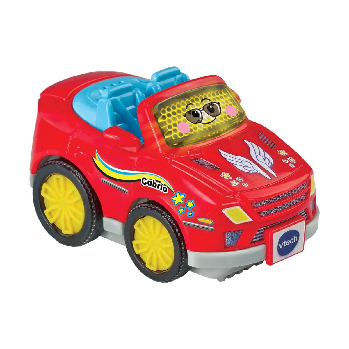 Hallo! Ich bin ein cleveres Cabrio! Tut Tut Baby Flitzer Cabrio mit beweglichem Kofferraumdecke. Beim Drücken der Magischen Gesichtsstaste werden Sätze, Melodien und Geräusche ausgelöst. Spricht fröhliche Sätze, spielt kindgerechte Melodien und Lieder und macht lustige Geräusche. Reagiert auf die Bewegung der Räder. Reagiert auf die Magischen Sensoren der Tut-Tut-Baby-Flitzer-Spielsets (separat erhältlich). Fördert die motorischen Fähigkeiten und animiert zum Rollenspiel. 3 gesungene Lieder und 6 Kindermelodien. Kompatibel mit den Produkten der Tut-Tut-Baby-Flitzer-Welt (separat erhältlich). Kindersicheres Batteriefach und Abschaltautomatik. Demobatterien sind enthalten.