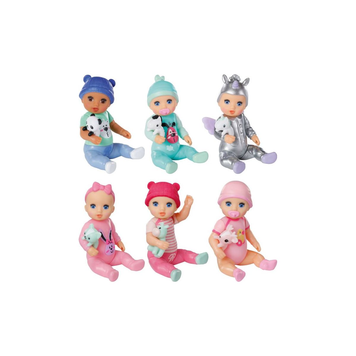 Entdecke die BABY born Minis Baby Puppen! Die süßen Püppchen Vicky, Noah, Henry, Tom, Alex und Isabella können Arme, Beine und sogar den Kopf bewegen. Mit einem coolen Farbwechsel-Effekt auf Mütze oder Outfit sowie ihrem eigenen ''Kuscheltier'', das sie in den Armen halten können ,sind sie nicht nur liebenswert, sondern auch einzigartig. Jede Verpackung enthält zudem ein Poster zum Sammeln aller Spielfiguren sowie einen Stickerbogen. Jetzt in kompakter Größe von 7 cm überall dabei! BABY born Minis Baby Puppen zum Sammeln. Inkl. süße Effekte, Accessoires, kleines Sammelposter und Minis Stickerbogen. FARBWECHSELEFFEKT: Berührt man den Körper der Babys mit den Händen und reibt leicht an der Oberfläche, wird ein magischer Farbwechsel sichtbar..